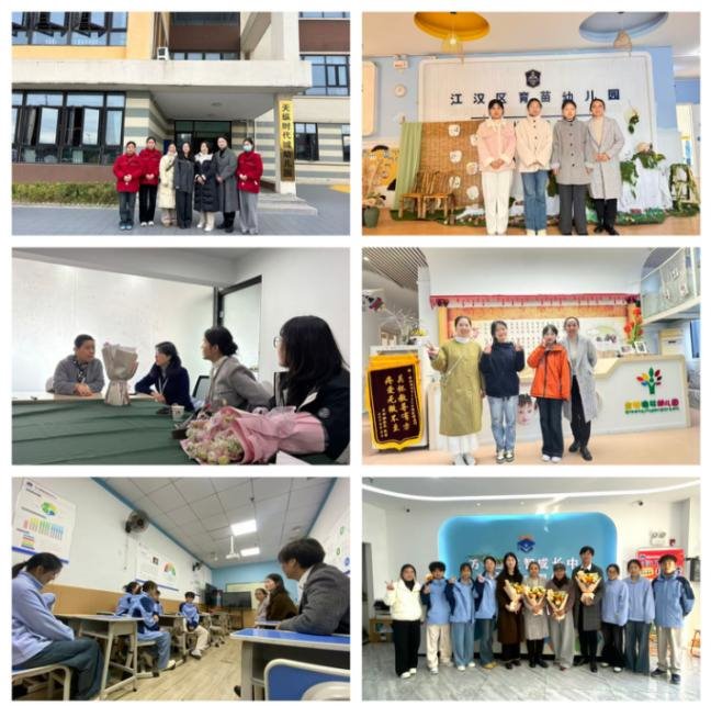 11月18日—21日,在学前教育系副主任满丛英老师的带队下,分别前往汉北天纵时代城幼儿园、江汉区育苗幼儿园、爱仕教育集团、东西湖区金地格林幼儿园、方与圆益智成长中心进行实地走访慰问。在汉北天纵时代城幼儿园,徐婷婷和吴倩黛老师听取了实习员工的带班分享,并与园方进行了深入交流,园方表示将进一步加强校企对接,精准匹配岗位,助力实习员工成长。在江汉区育苗幼儿园,满丛英老师深入了解了实习员工的工作和生活情况,对实习员工自身发展给予了充分指导。在爱仕集团,孟李雪和麻惠婷老师非常关心实习员工的生活和工作情况,认真听取了员工对于未来职业规划、毕业论文撰写等提出的问题,并给予了认真解答。在东西湖区金地格林幼儿园,满丛英和邓宵杰两位老师现场观摩了员工的带班授课,对他们所展现出的良好专业素养给予了高度赞扬。在方与圆益智成长中心,满丛英、李秋辰和向美三位老师走访了实习员工的工作场地,并与员工就专业实习中遇到的困难和问题进行了深入沟通交流。